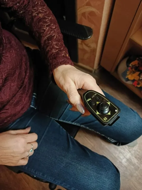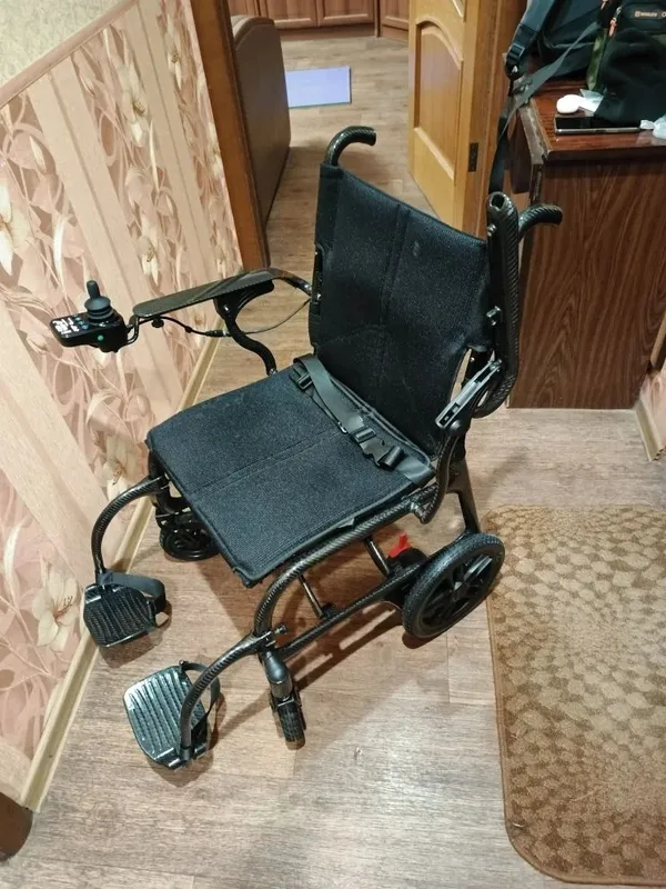 Очень маневренная коляска , есть дистанционный пульт управления! Для развитых от пояса вверх людей очень советую