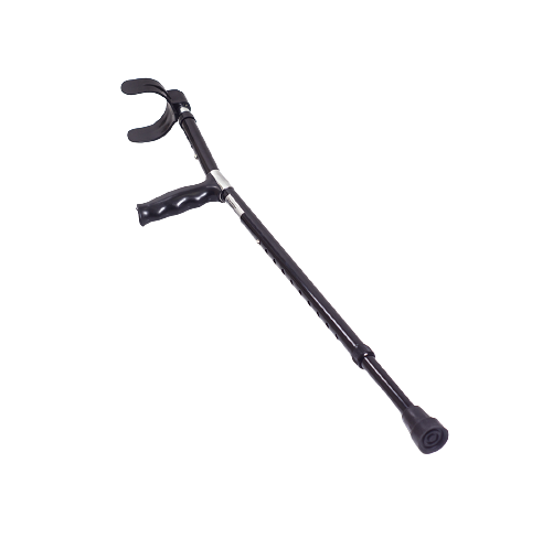 - Подлокотные, которые еще называют «канадками», характеризуются наличием опоры под локоть. Они состоят из металлической стойки, рукояти и резинового наконечника. Такие модели рекомендуются людям, успешно прошедшим начальный этап реабилитации и нуждающимся в незначительной нагрузке для нижних конечностей.